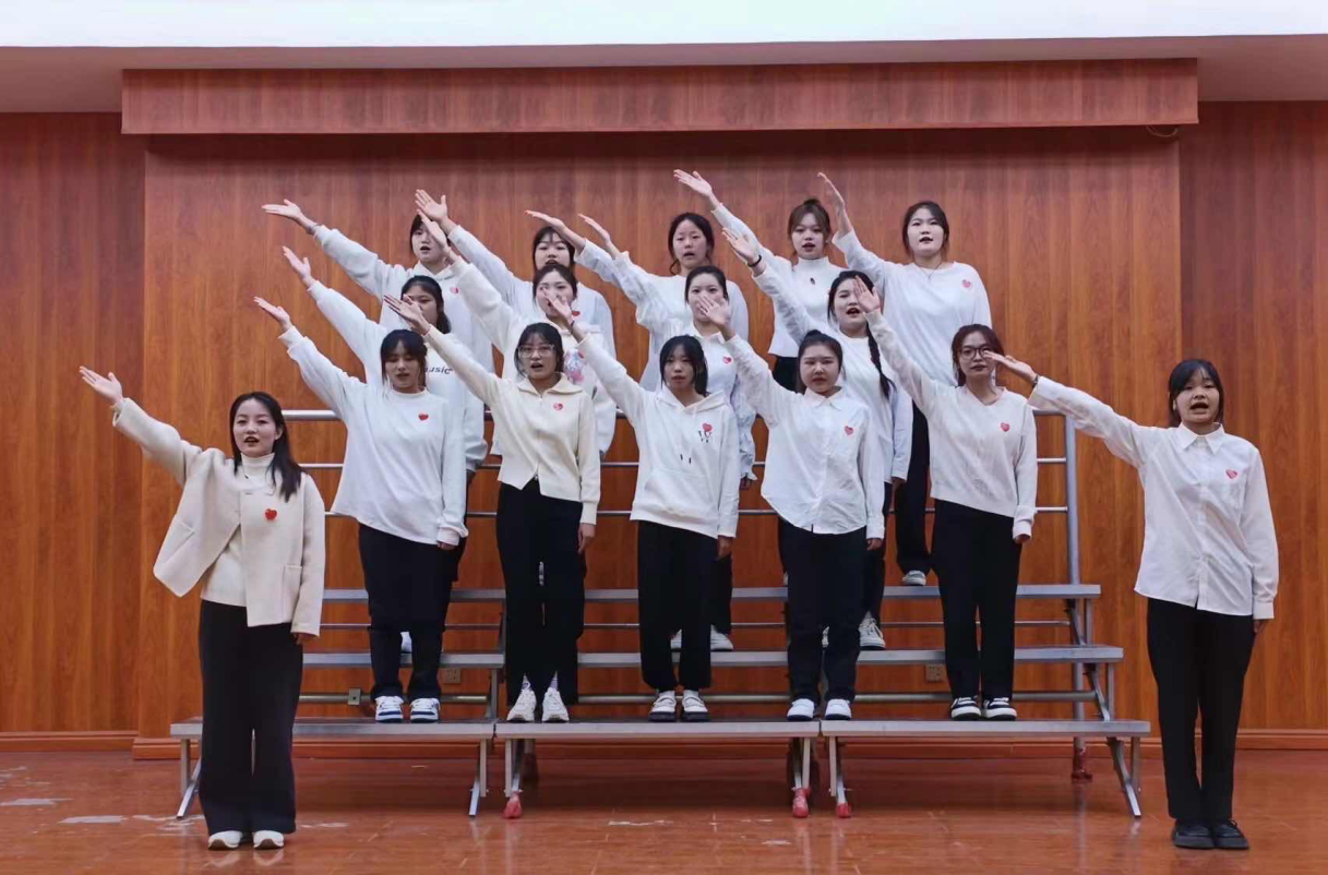 赛场上,一首首歌颂祖国、歌颂党、讴歌新时代的经典曲目在会场唱响,同学们在赛前都进行了反复的排练,嘹亮的歌声、整齐的动作,赢得了一阵又一阵的掌声。