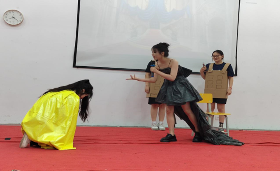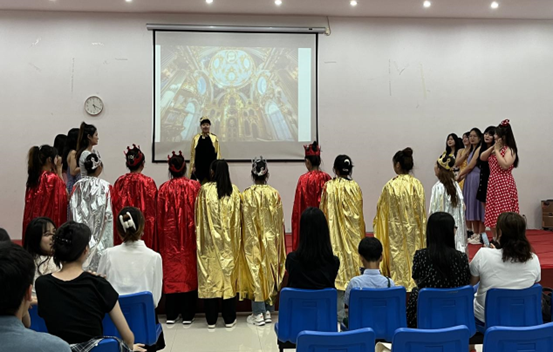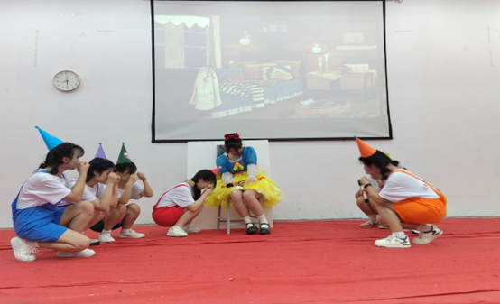 为了这次展演,同学们进行了几周的准备,各表演团队根据剧情自制有创意、精美的道具,选用符合故事情节的服饰,表演风格多样。饰演的角色形象鲜明,动作和语言充满童趣、喜感,引来现场观众阵阵掌声和欢呼声。本次活动还获得了戏曲公司胡蝶老师带领的化妆团队的大力支持,她们不辞辛苦地为同学们化了精致的舞台妆,使得人物形象更加充满童趣,另外,还为本次展演带来了精彩的戏曲节目,获得了同学们热烈的掌声。