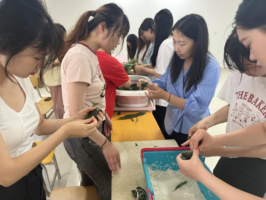 今天来参加活动的还有学前教育专业中韩合作办学项目的韩国教师,李经理向她们介绍了我们中国端午节的传统习俗,并请她们品尝了同学们亲手包的粽子,她们表示非常开心能在中国上课期间体验到中国的传统文化。