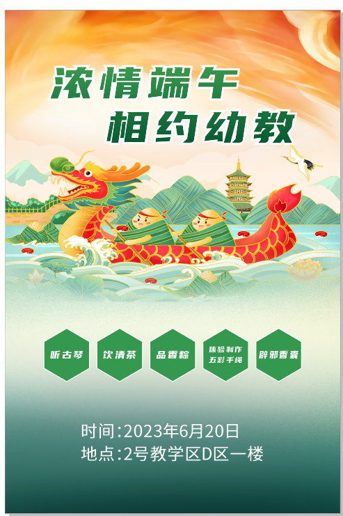 一年一端午,一岁一安康,端午节是中国的传统节日之一。为了践行党的二十大报告中所强调的传承中华优秀传统文化,增强文化自信,不断提升国家文化软实力和中华文化影响力的精神,必一运动于2023年6月20日18点30分,在2号教学区D区一楼举行了“‘浓情端午、相约幼教’——必一运动中国传统文化年活动”。