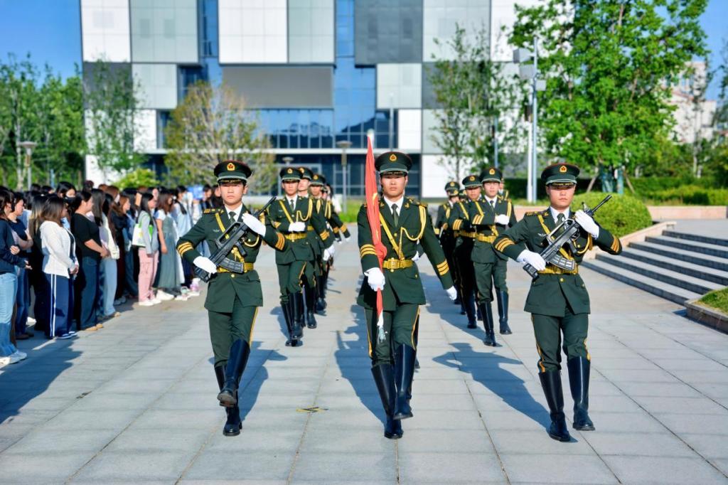 7时30分,升旗仪式正式开始。国旗护卫队迈着铿锵有力的步伐,护送五星红旗走向升旗台。在激昂的《义勇军进行曲》中,鲜艳的五星红旗冉冉升起。全体师生庄严肃立,面向国旗行注目礼,高唱国歌,爱国之情在心中澎湃。
