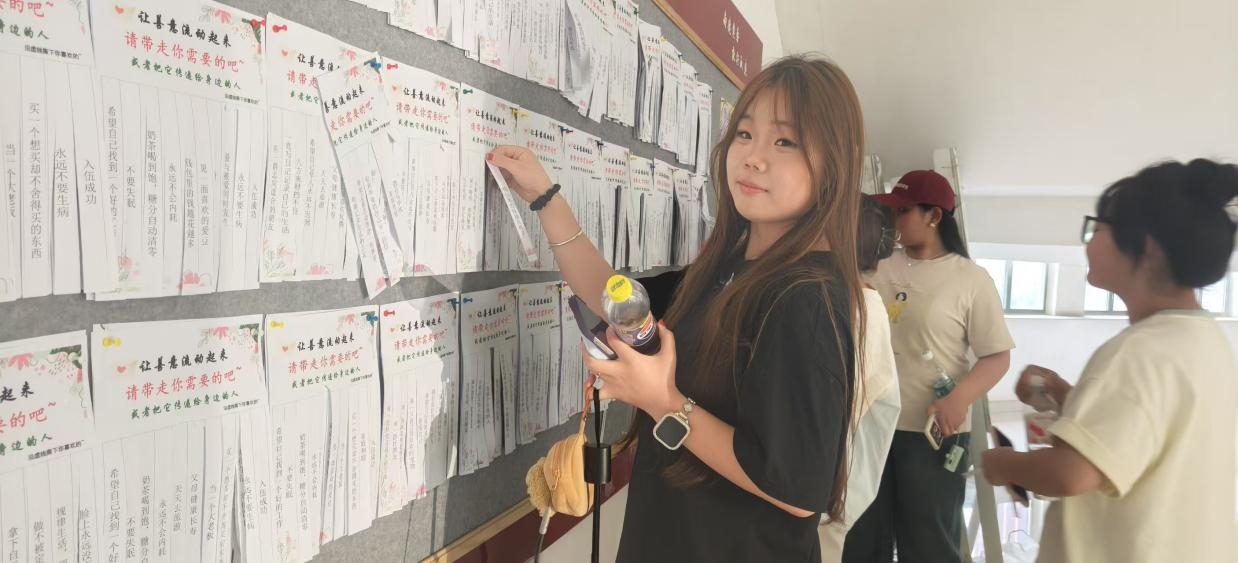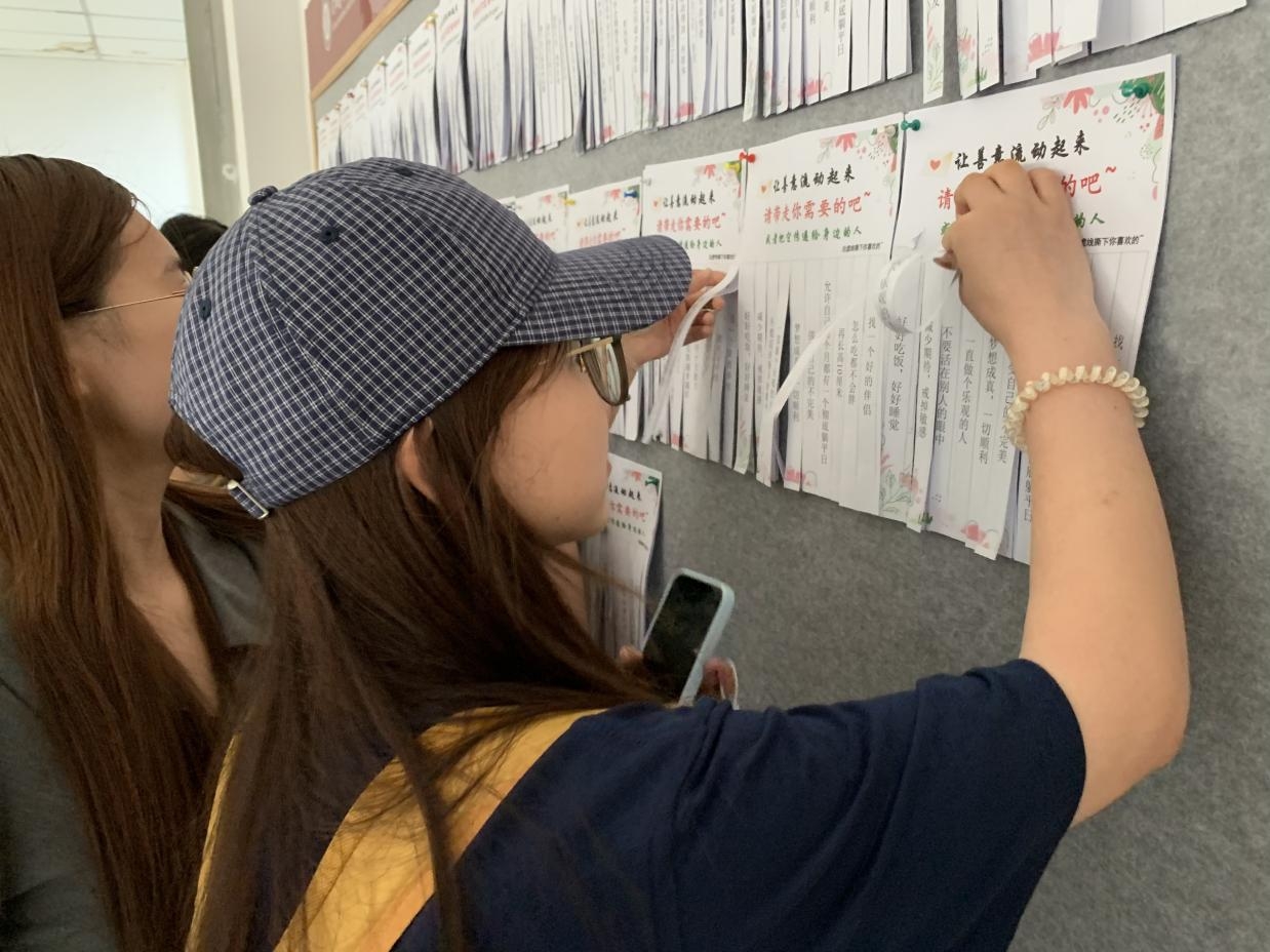 活动现场经过精心布置,充满童趣与活力的装饰元素营造出温馨舒适、愉悦的氛围。一面醒目的心愿墙成为全场焦点,上面张贴着同学们写下的心愿单,内容涵盖学习、生活、人际交往等多个方面以及充满诗意的小梦想。活动规则新颖有趣,同学们可自由选择撕下触动自己的心愿单,并通过私信、留言板等方式,为心愿主人分享经验、提供建议或送上温暖鼓励。活动过程中,大家热情高涨,积极互动。