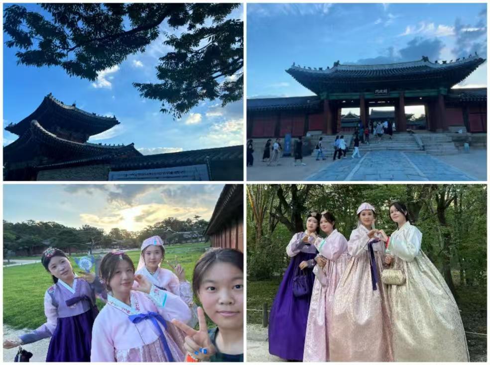 在仁荷大学的精心组织下,研学行程充实高效:员工们首先投入了韩语基础与口语的系统学习;随后深入体验韩国文化,参访了昌德宫、北村韩屋村及韩国历史博物馆等核心地标;积极参与了展现韩流活力的K-Pop舞蹈课程;结合学前教育专业特色,实践了形象礼仪与化妆技能;并动手体验了韩国传统手工制作工艺。整个研学活动在仁荷大学举行的结业典礼中圆满收官。