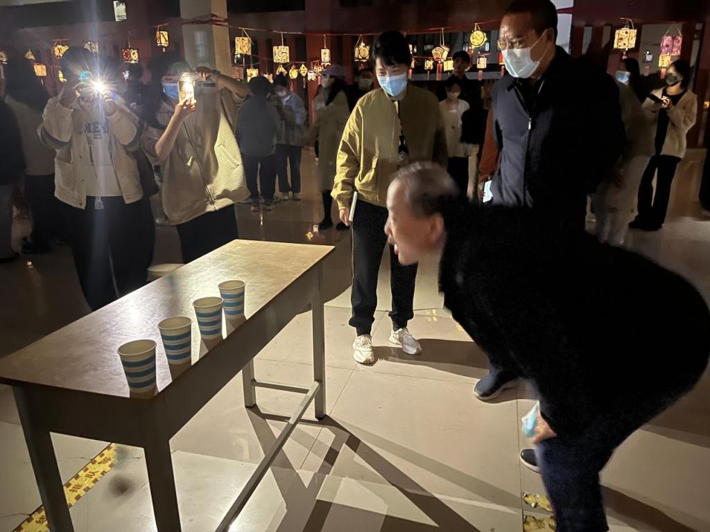 本次活动同样受到了校领导的高度重视,公司党委书记冯向军、副董事长梁周勇、纪委书记薛雁明、工会主席姜荣蓉也来到了活动现场,领导们饶有兴趣地了解了灯笼的制作过程和现场的活动安排,并与员工一起体验了闯关游戏。冯书记现场为大家深情朗诵了李白的《将进酒》,姜主席带着现场的同学一起演唱了儿歌《踏浪》,戏剧公司副经理陆蓓、必一运动副书记丁鼎也为同学们带来了精彩的戏曲片段演唱,赢得了一阵阵热烈的掌声。