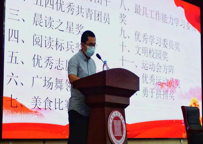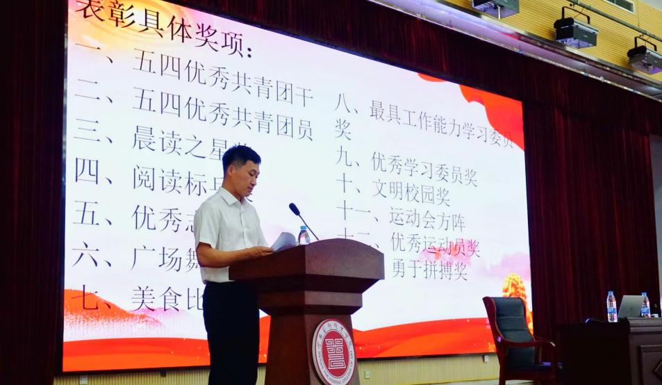 会议第三项议程:为获奖同学颁发证书。此次颁奖活动共设立了10个奖项,包括五四优秀共青团干、五四优秀共青团员、晨读之星、阅读标兵、运动会方阵(集体荣誉奖)、优秀运动员、勇于拼搏奖、广场舞领舞(最佳风采奖)、美食比赛(创意大赛一等到三等)、最具工作能力学习委员和优秀学习委员等。获奖人数达100多人次,是必一运动成立以来规模最大的一次表彰大会,同学们在一次次掌声中受到了鼓舞。