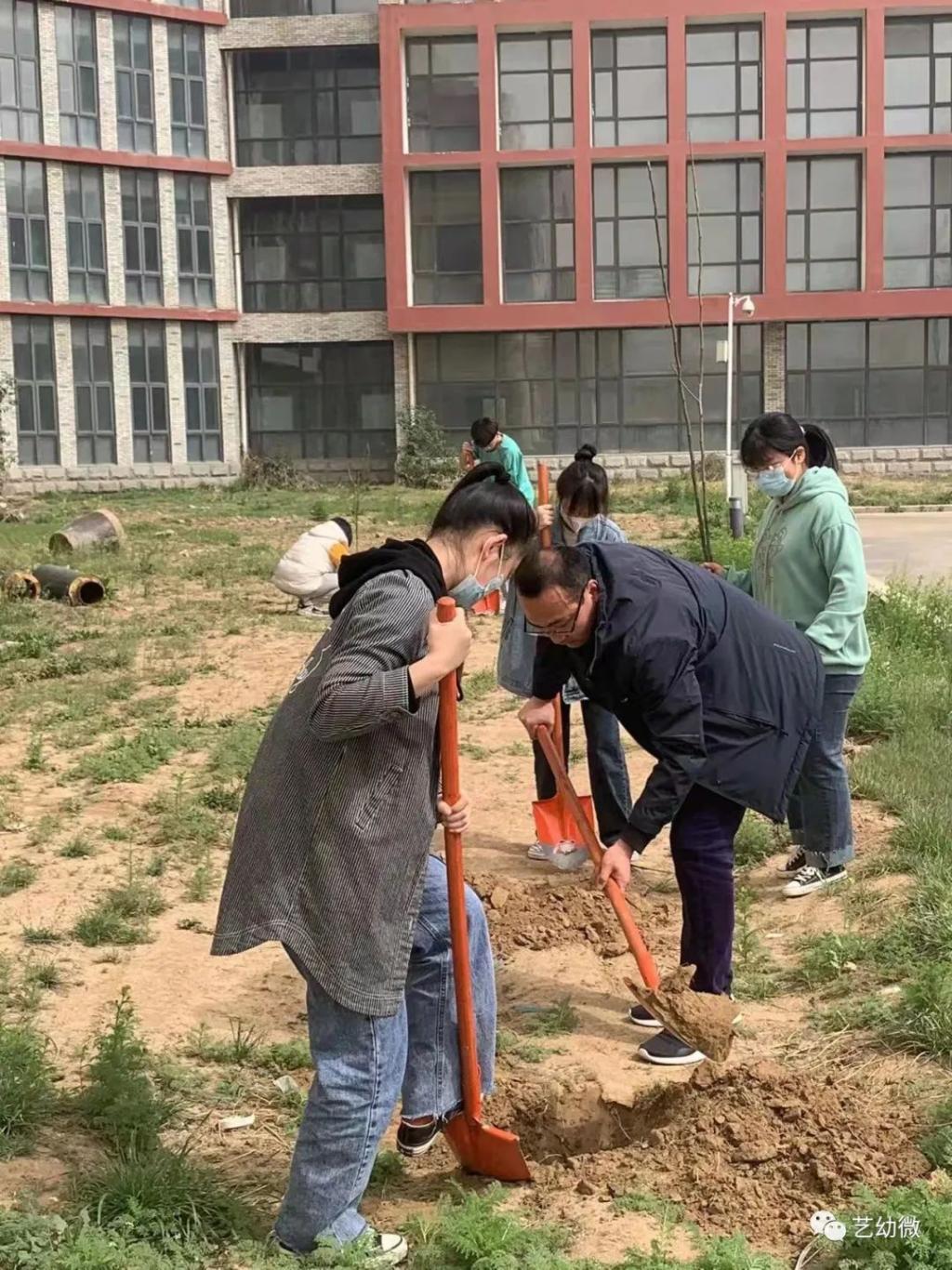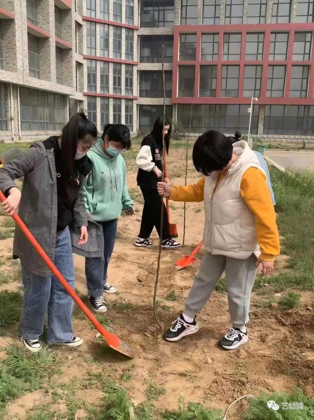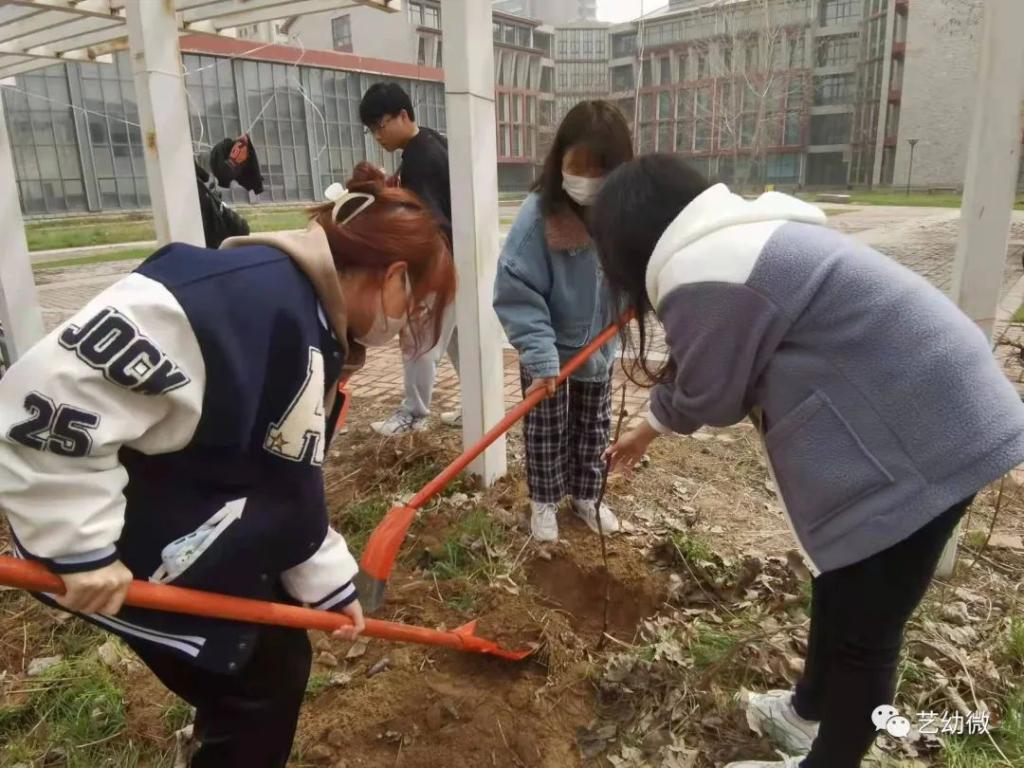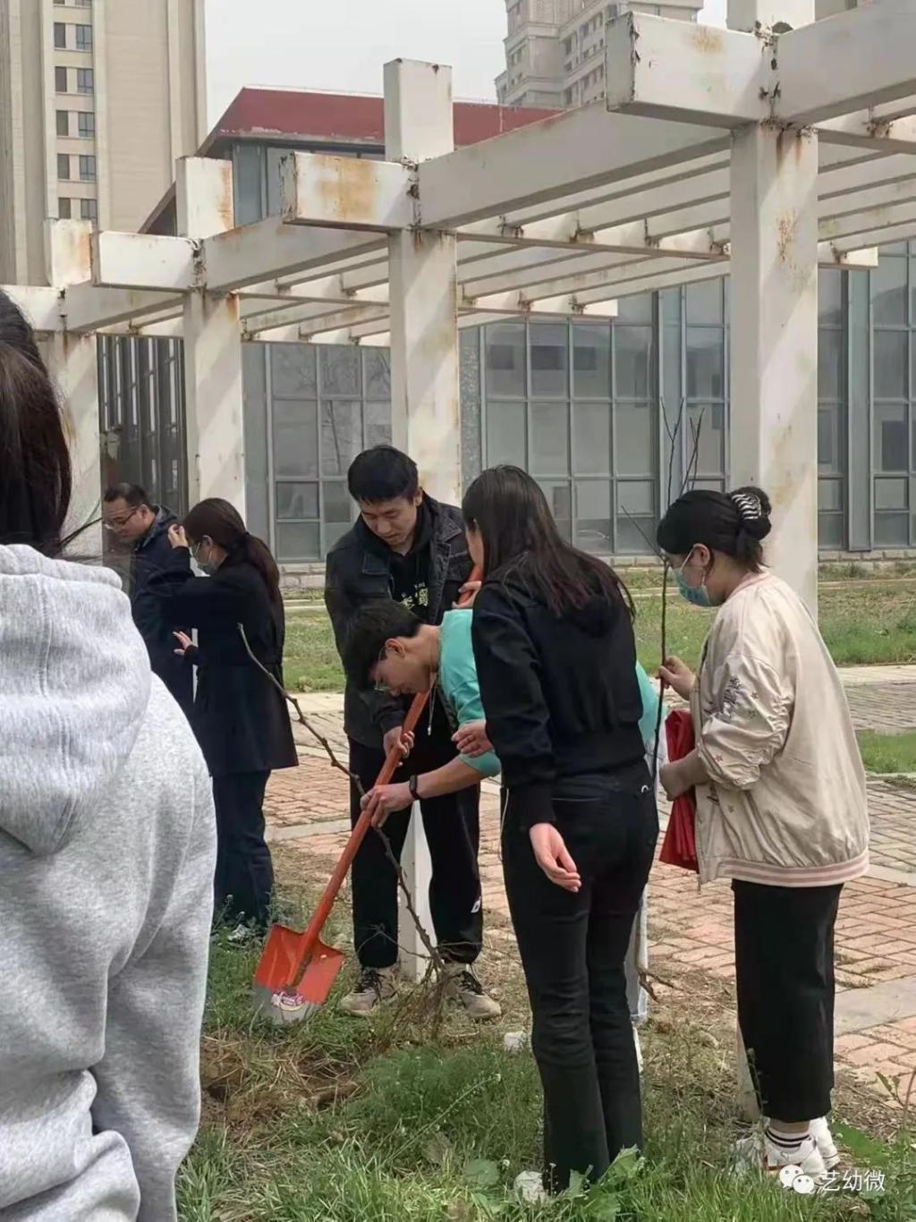 3月14日下午,必一运动副经理李海英,党支部副书记穆延柯,党政办主任崔颖,教学办主任车进以及21级辅导员冯凡与20、21级的员工们一起种下一颗颗小小树苗,为校园增添一丝光彩。