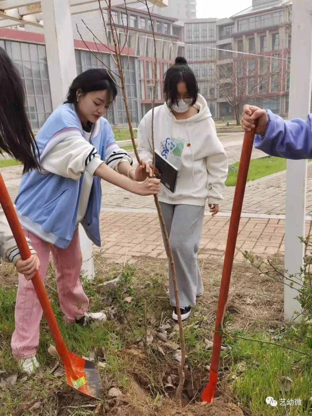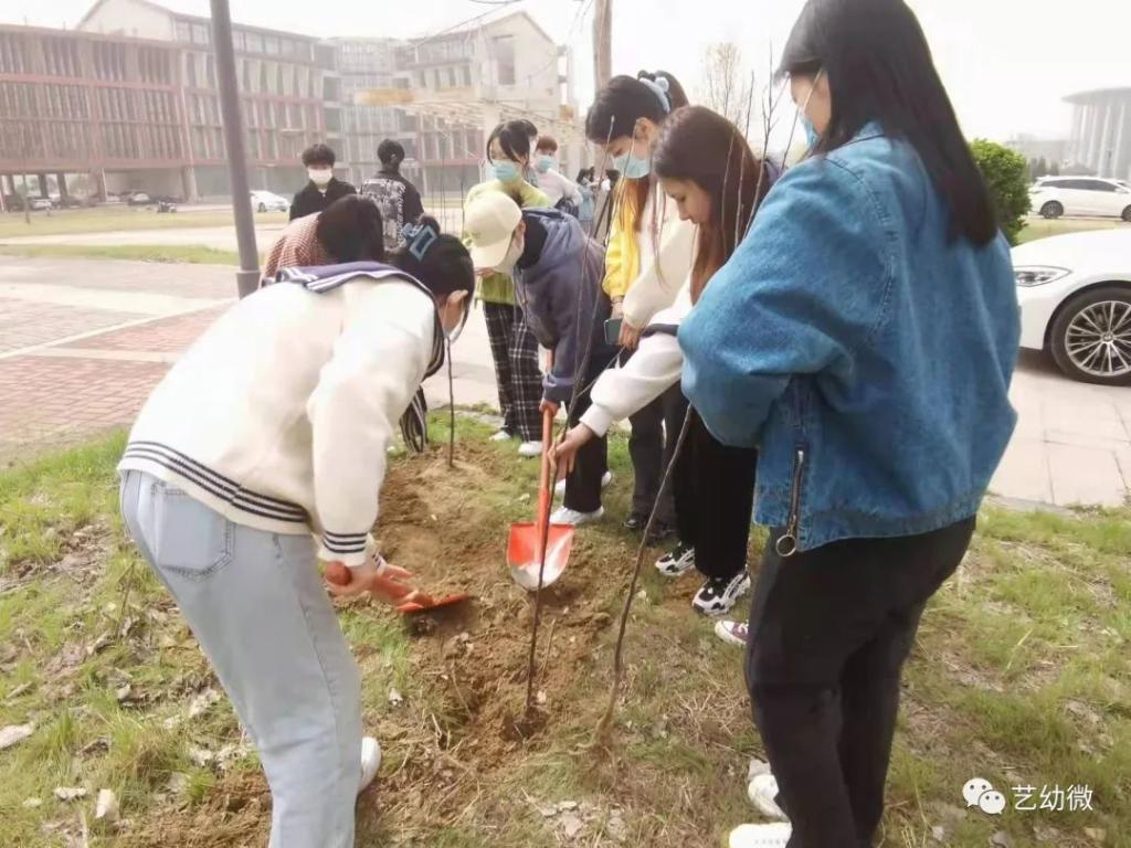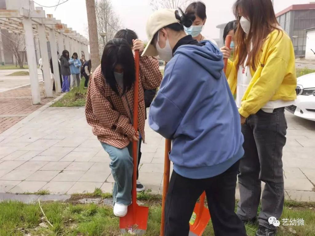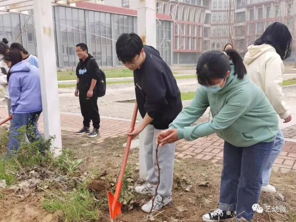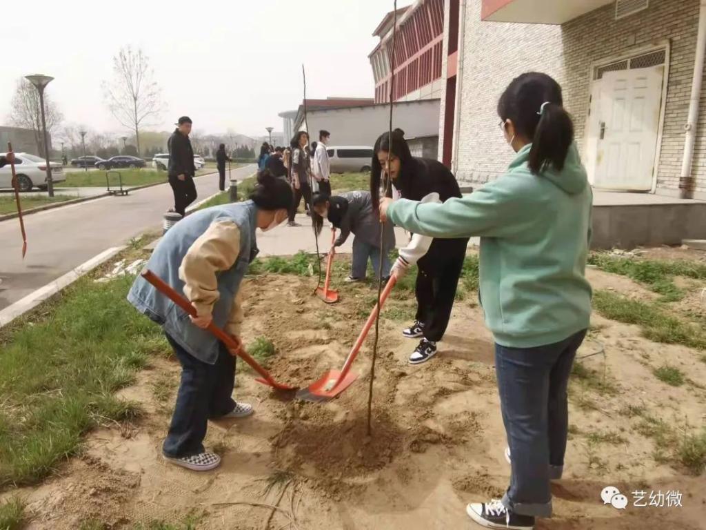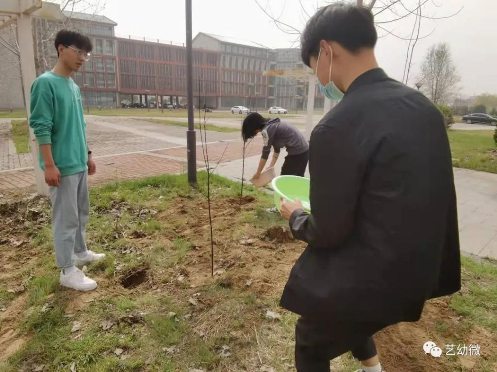 3月14日下午,必一运动副经理李海英,党支部副书记穆延柯,党政办主任崔颖,教学办主任车进以及21级辅导员冯凡与20、21级的员工们一起种下一颗颗小小树苗,为校园增添一丝光彩。