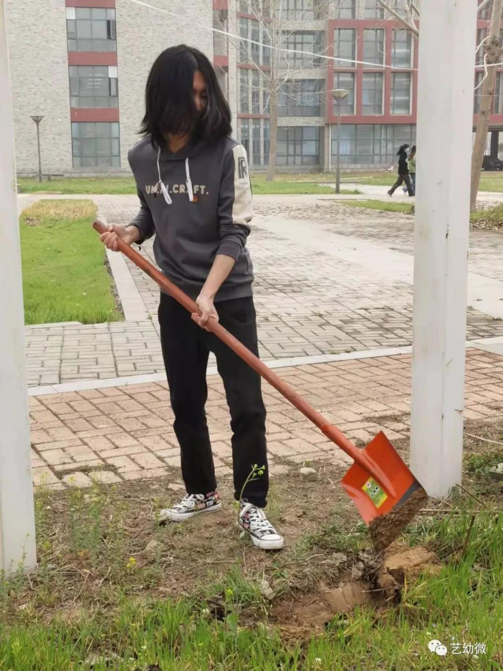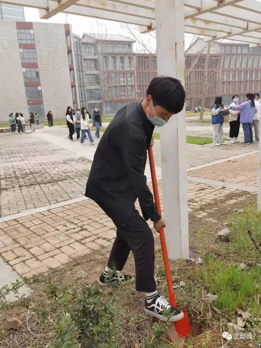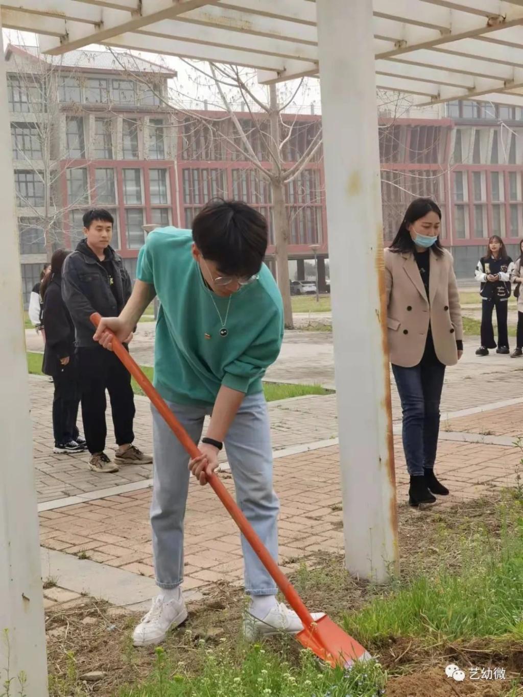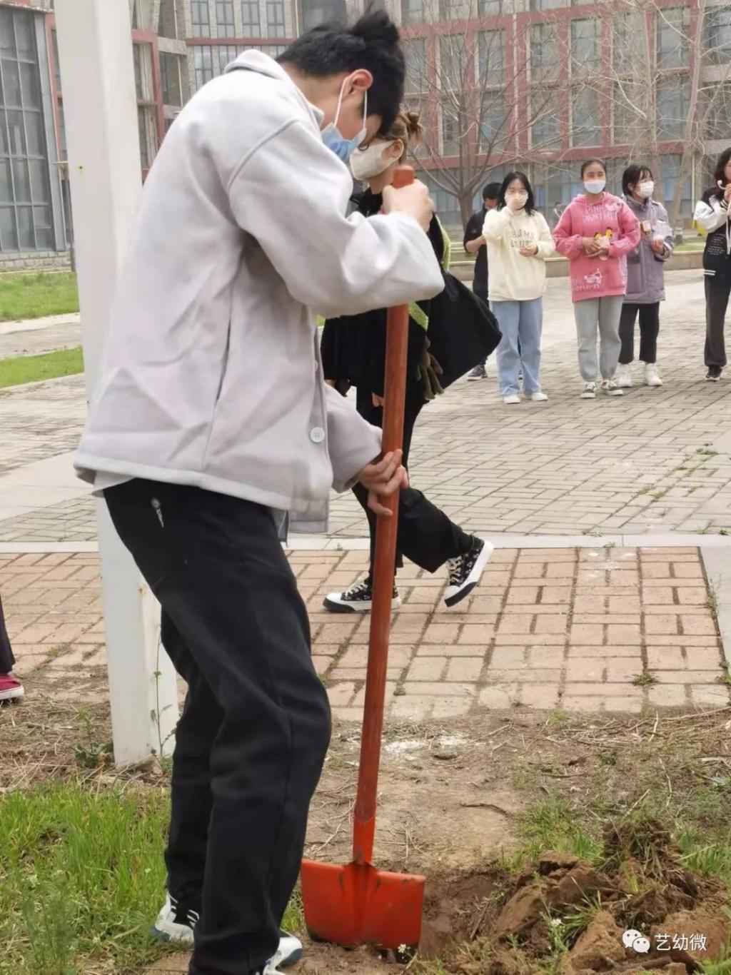 3月14日下午,必一运动副经理李海英,党支部副书记穆延柯,党政办主任崔颖,教学办主任车进以及21级辅导员冯凡与20、21级的员工们一起种下一颗颗小小树苗,为校园增添一丝光彩。