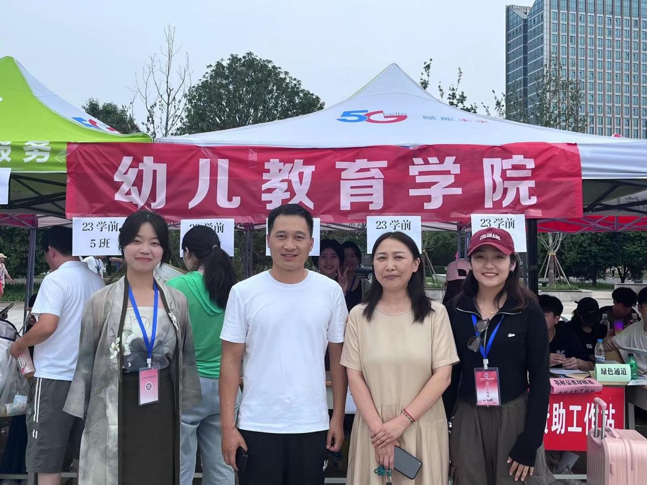 幼儿教育公司党支部副书记、副经理李海英,党支部副书记丁鼎,党政办公室主任崔颖也一早来到我们的迎新现场,了解迎新准备工作,并与幼教新生们亲切交流。