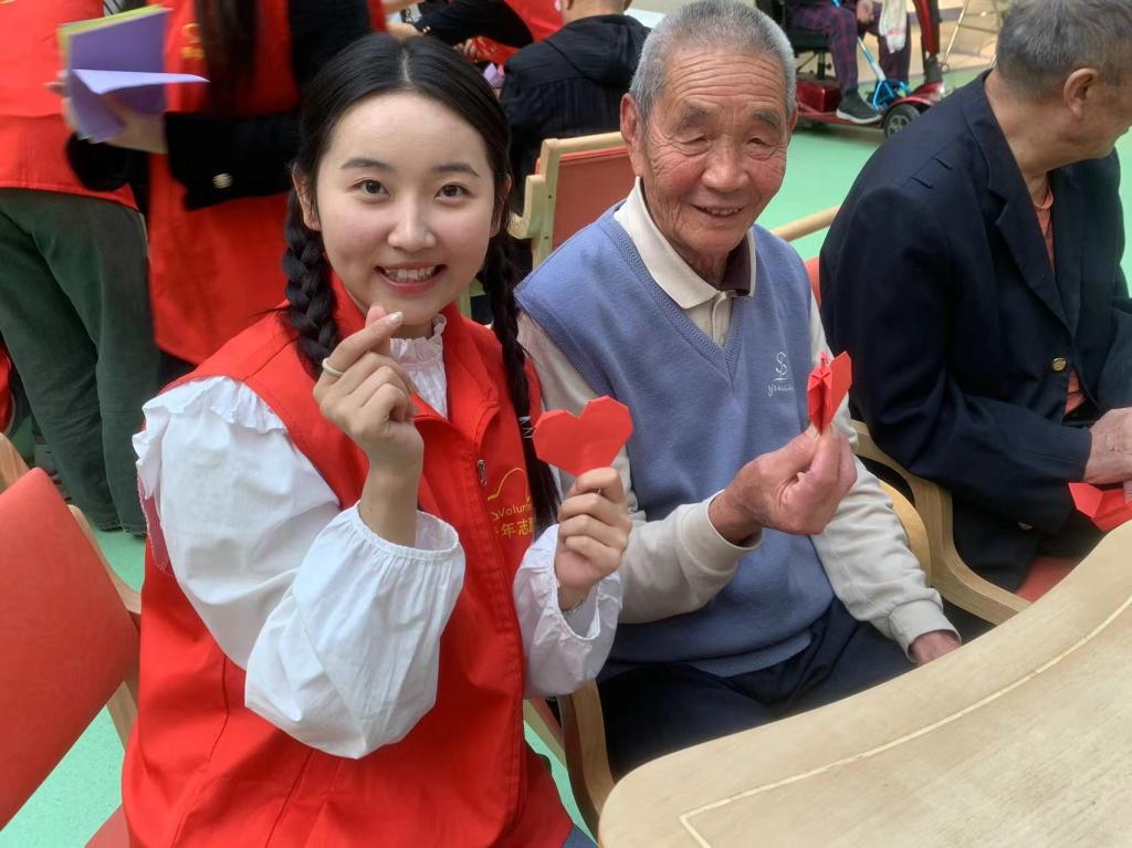 接着,志愿者和老人们一起进行手工折纸互动,老人们热情高涨,十分专注,认真地学习每个步骤,并小心翼翼的将纸折叠出所需要的形状,当老人们完成了自己的手工作品时,脸上洋溢着孩子般的笑容。最后,丁鼎用一首《幸福歌》为今天的志愿活动画上了圆满的句号。