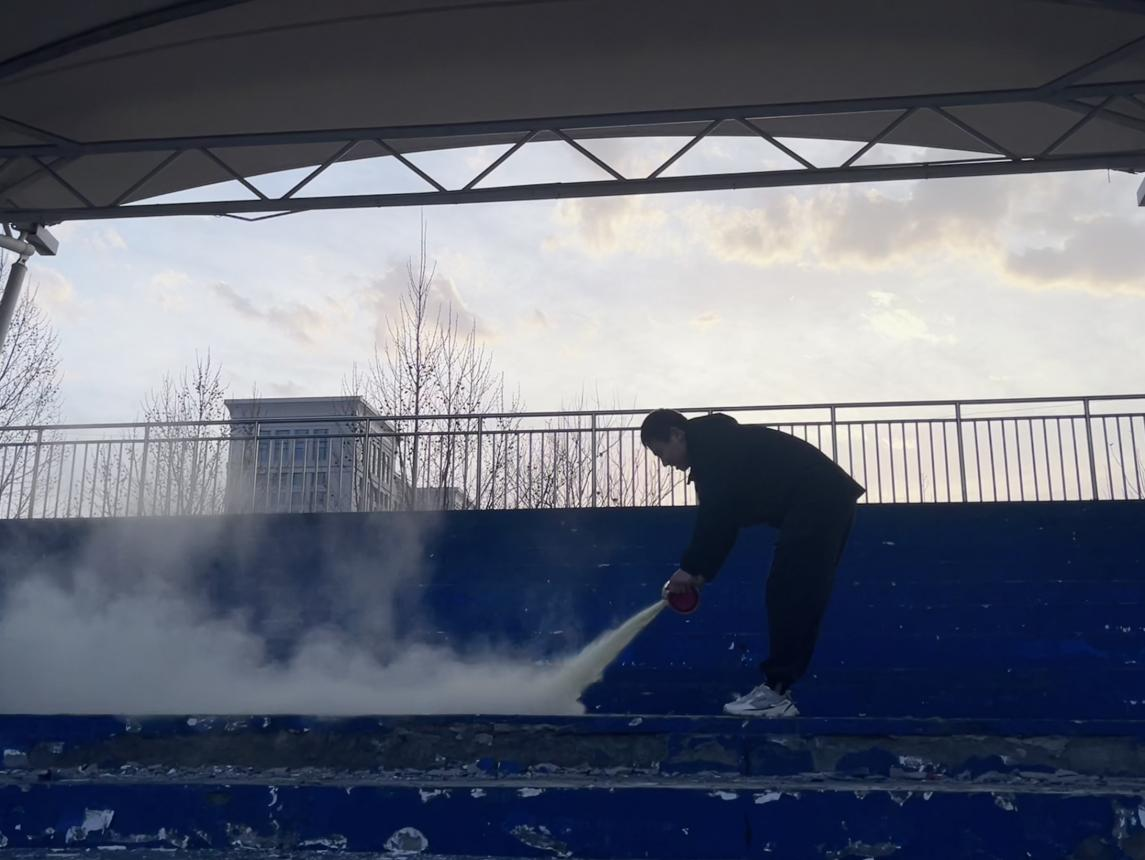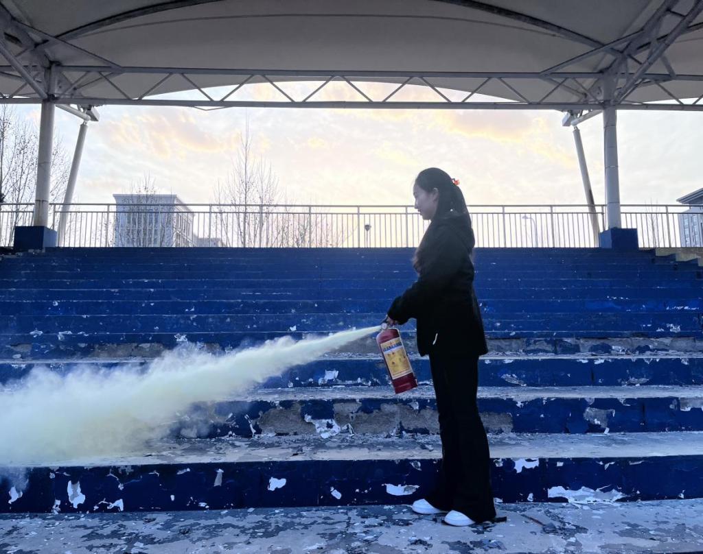 演练结束后,公司辅导员冯凡进行了消防器材的操作培训,详细介绍了灭火器的使用方法,并操作灭火器进行实地演练。在辅导员的指导下,员工史鹏暄亲自体验了模拟灭火器灭火,这都进一步加深了同学们对灭火器使用方法的理解与认识。